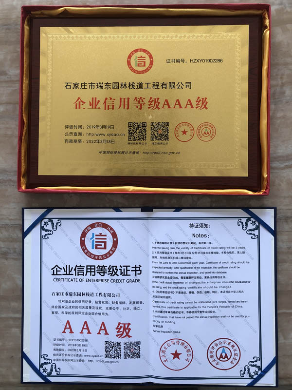 恭祝瑞東棧道公司獲得AAA信用企業(yè)